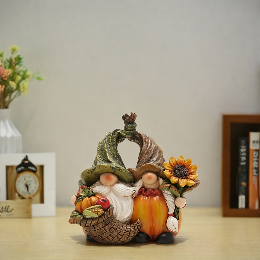 1pc of Creative Rustic Harvest Pumpkin Gnome Couple Resin Ornament for Home, Living Room, Desktop, Entrance Cabinet Decoration, Warm Decor for Studio And Office, Garden, Courtyard, And Windowsill Flower Rack Decoration